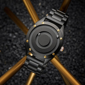 A sleek and modern watch, designed for those who value style and uniqueness. This timepiece features a magnetic circular display that lets you experience time in a whole new way. The premium black stainless-steel strap adds durability and comfort, giving you a refined and classy feel on your wrist. Perfect for both men and women, its unique design is sure to catch attention and spark conversations wherever you go.