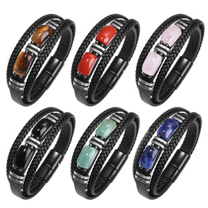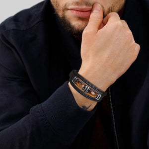 Elevate your style with this classic men’s bracelet, featuring natural Tiger Eye and Obsidian stones for strength and balance. Wrapped in premium leather and finished with a secure magnetic buckle, it blends rugged charm with modern elegance — the perfect accessory or gift for any man