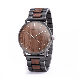 Unleash the wild elegance of nature on your wrist with the Wooden Watch – where rugged wood grain meets sleek black steel in a minimalist masterpiece! Crafted from premium sustainable wood for that authentic, earthy vibe, this timepiece boasts a crystal-clear dial, ultra-precise quartz movement, and a hybrid metal-wood band that's as tough as it is stylish. Perfect for the modern adventurer who craves eco-chic sophistication – lightweight, hypoallergenic, and endlessly versatile for boardrooms or bonfires. Why blend in when you can stand out? Grab your slice of timeless adventure today and let every second tick with natural flair!